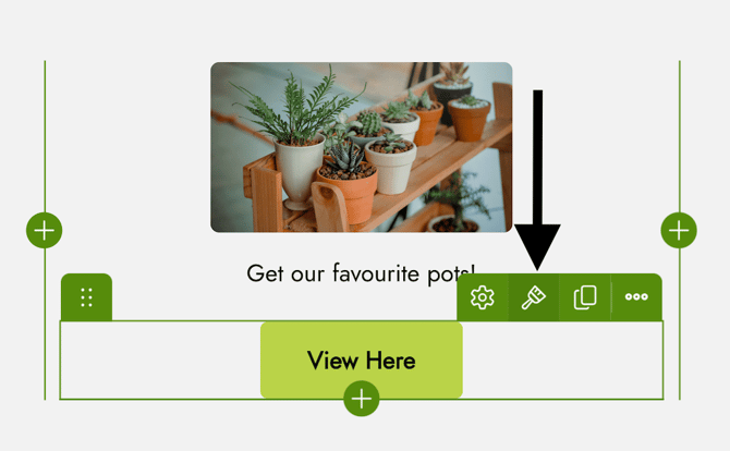 You can enhance how each Section element looks with a variety of different styling options. The styling menu for each element can be accessed by clicking the paintbrush icon on the top-right of any element or Section, as pictured below: