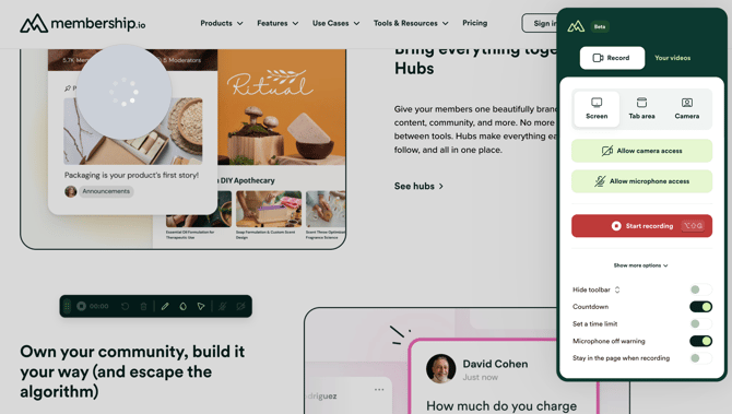 Using the Chrome extension is a super-fast and easy way to capture your screen, tab, webcam, and microphone to share your message with just a few clicks. You can use the Chrome extension to record any course or educational presentation that can be shared via a link or Hub.