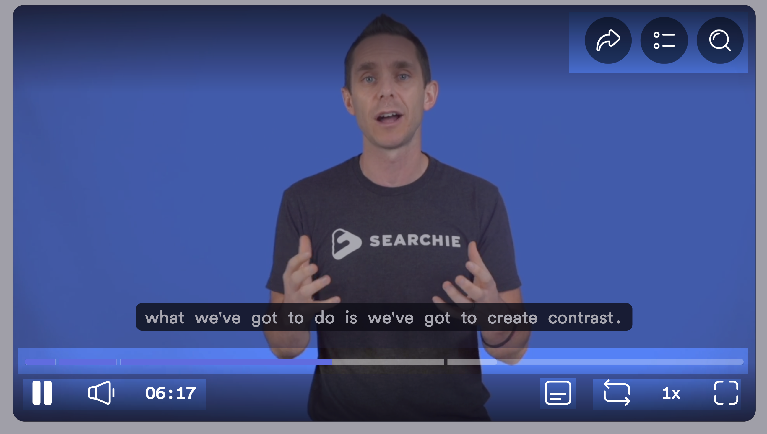 Every video and audio file you upload to your Membership.io account is transcribed, captioned, and made searchable by words spoken.